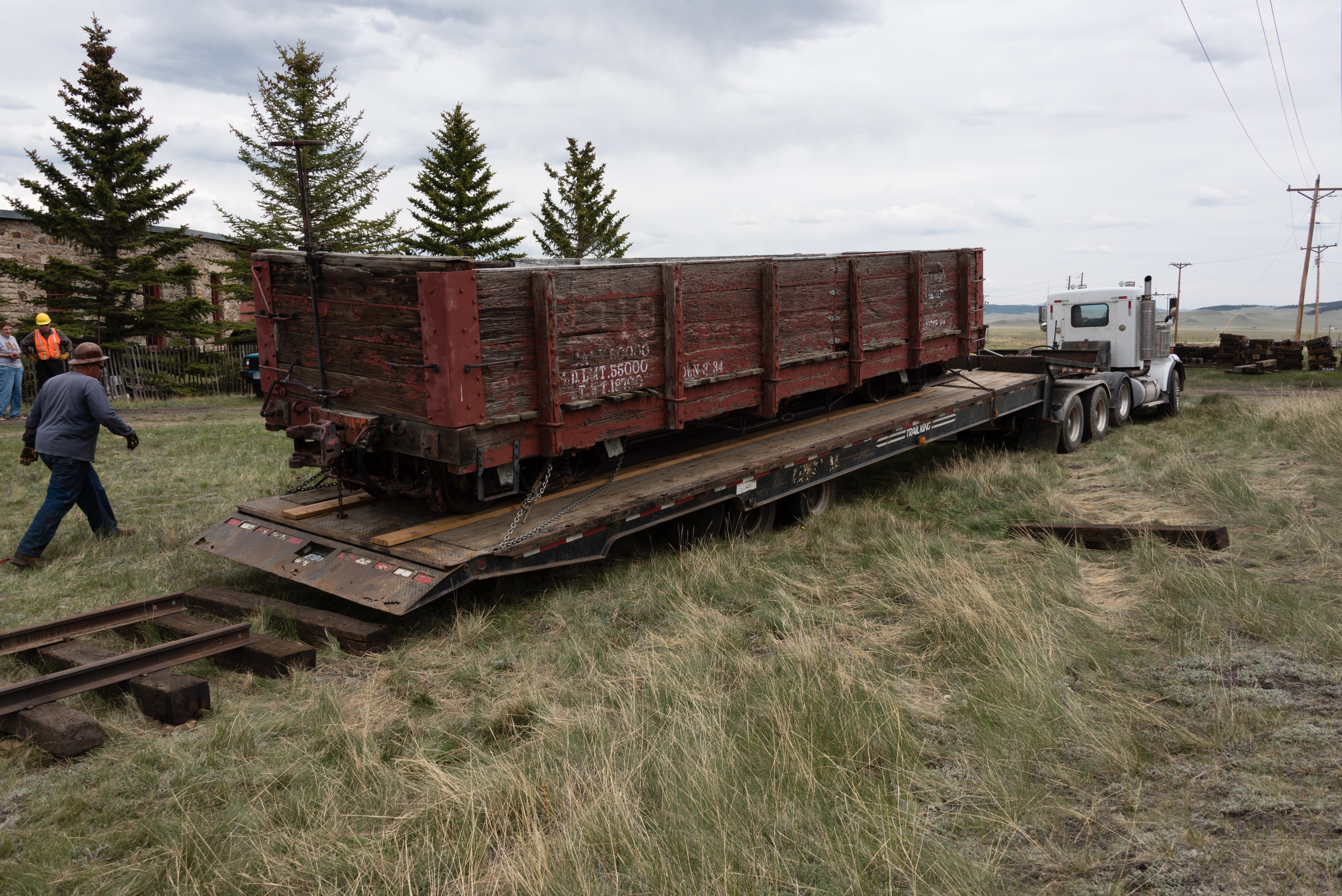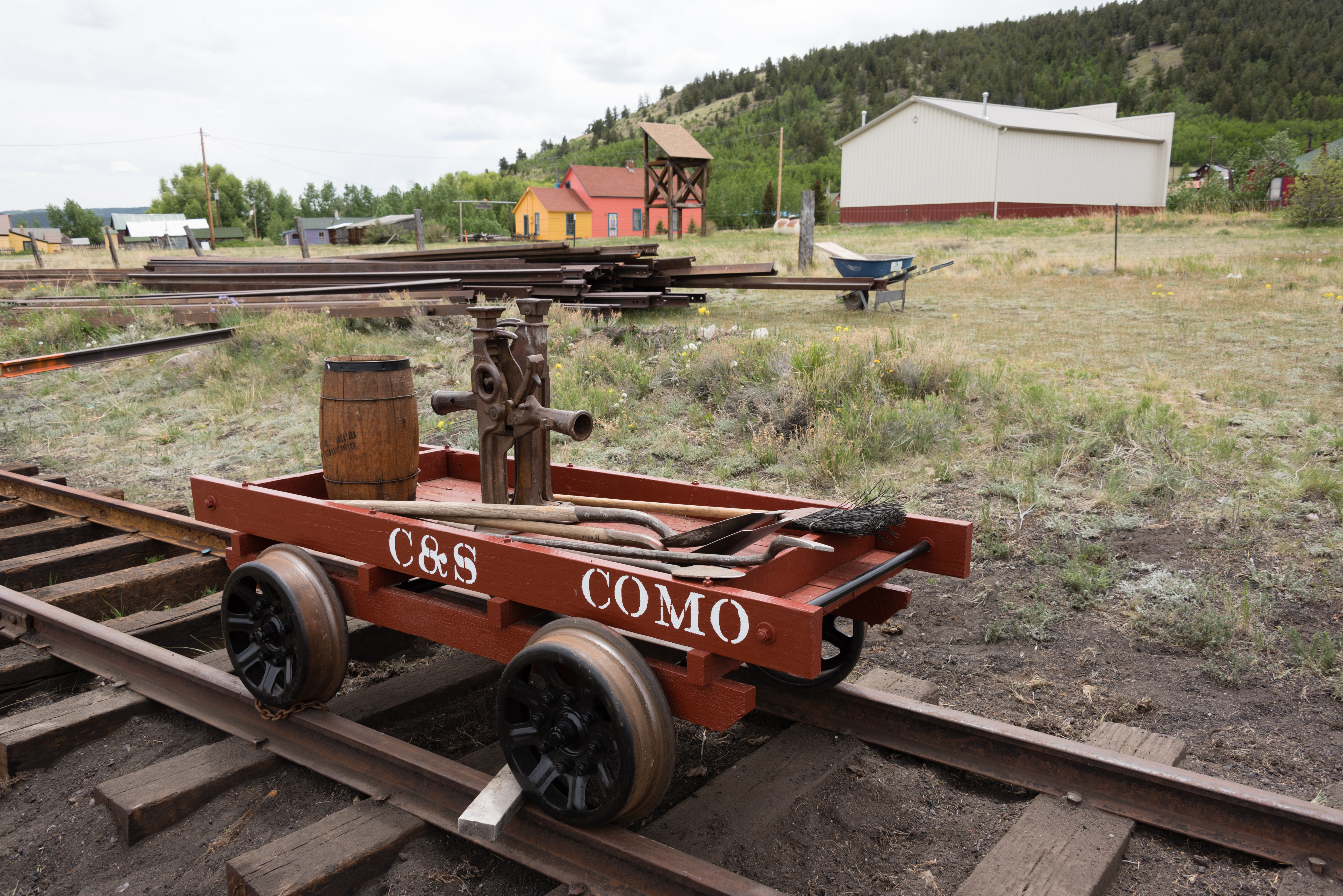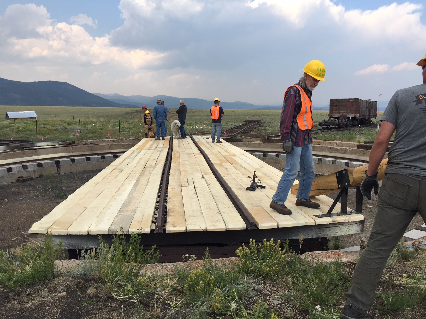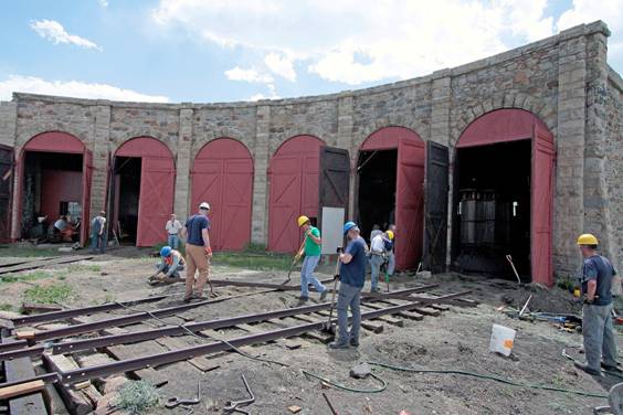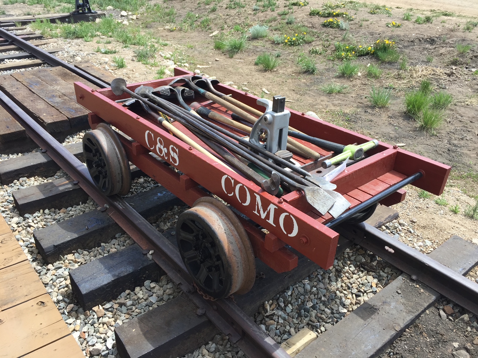 The first five pictures are from the week of 3 June to 10 June. They show overruns on tracks 2 and 5 from the roundhouse, along with new track into stall 6. We also extended the track west of the depot by 60 feet and the Gunnison main by 200 feet. Also there is a picture of C&S gondola 4319 which we got from Central City under a 10 year lease. We will restore the car and keep it in the roundhouse.